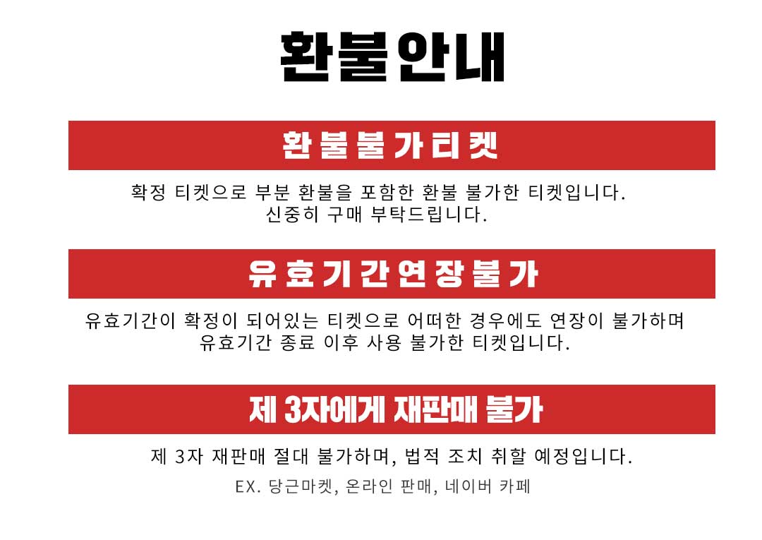 ★ 확정 티켓이므로 구매 후 코로나 확진, 개인 사유 등 어떠한 사유로도 환불/취소가 불가합니다.