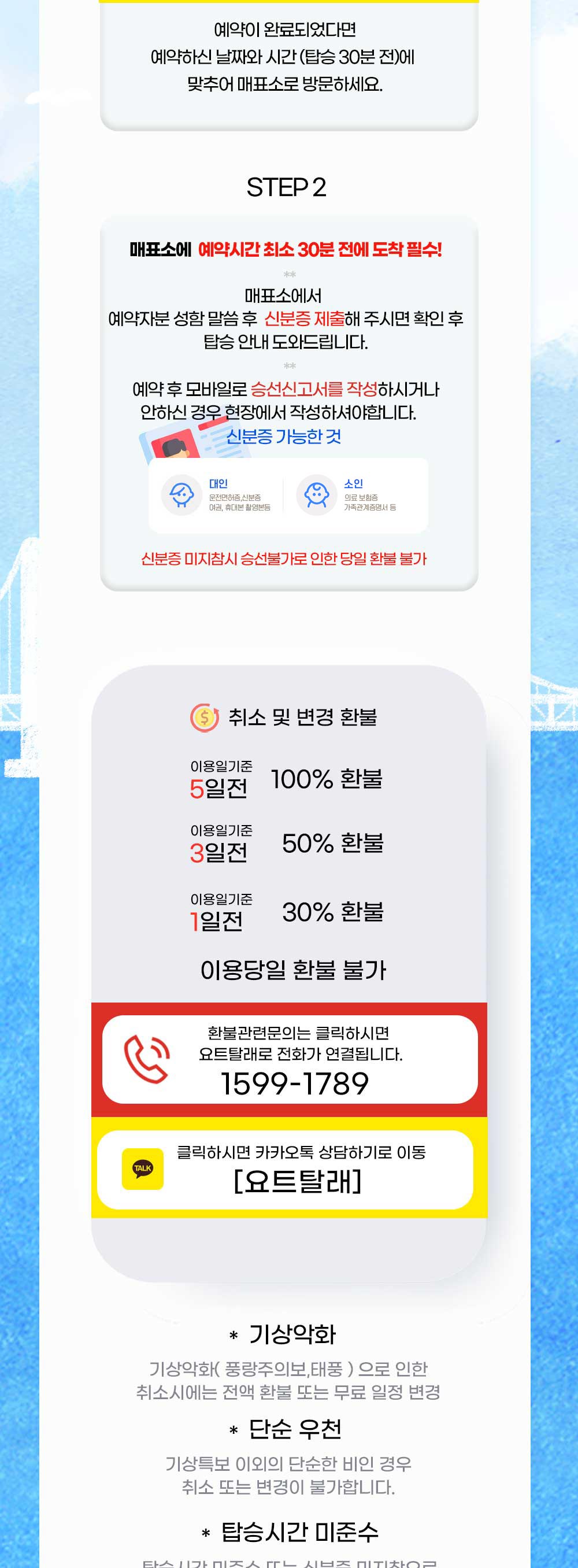 환불 및 취소 접수처 ▶ 요트탈래 : 1599-1789 또는 카카오톡 [요트탈래]