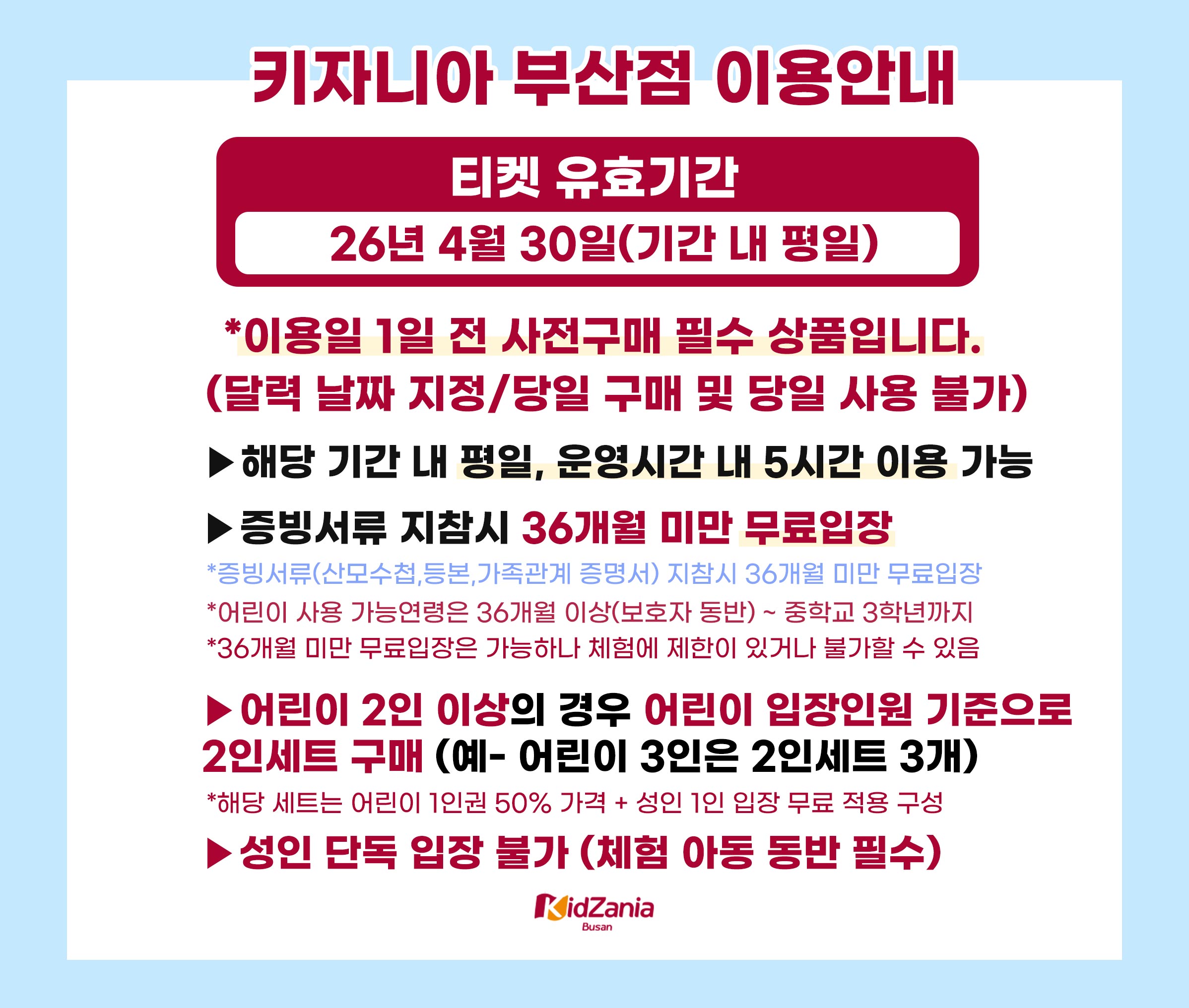 티켓(입장) 유효기간 : 26년 4월 30일 (이용일 1일 전 사전 구매 후 이용 필수)